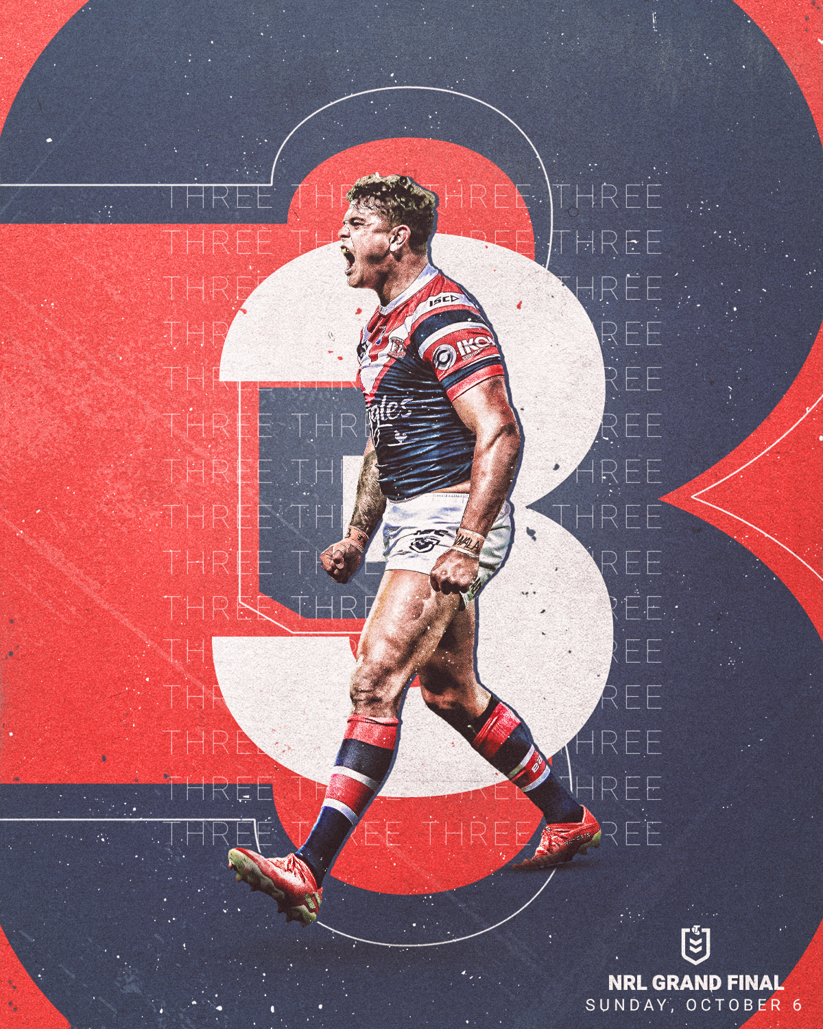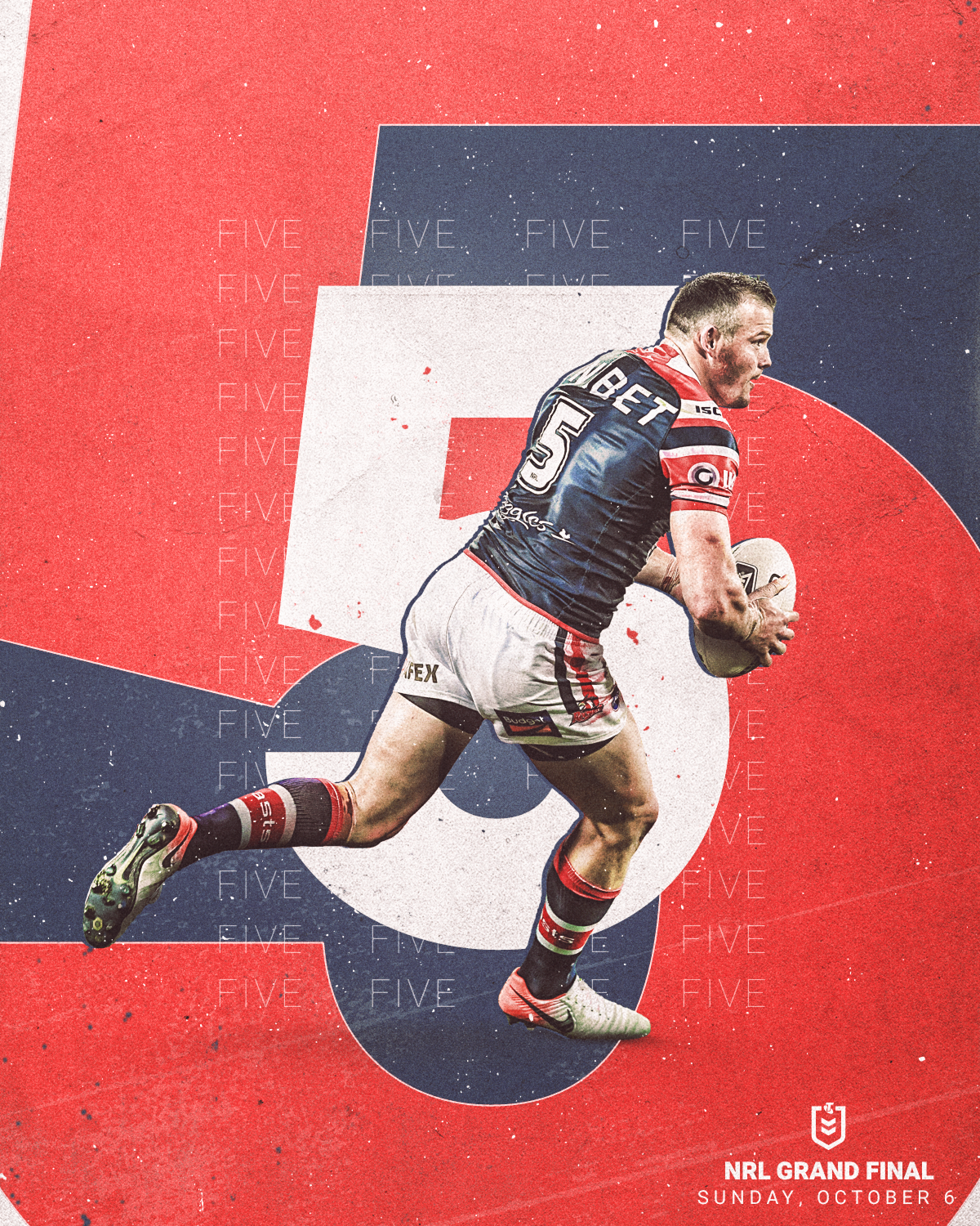 I was commissioned to design a 7-day countdown series for the National Rugby League. The countdown was created around the grand final match between the Sydney Roosters and the Canberra Raiders.